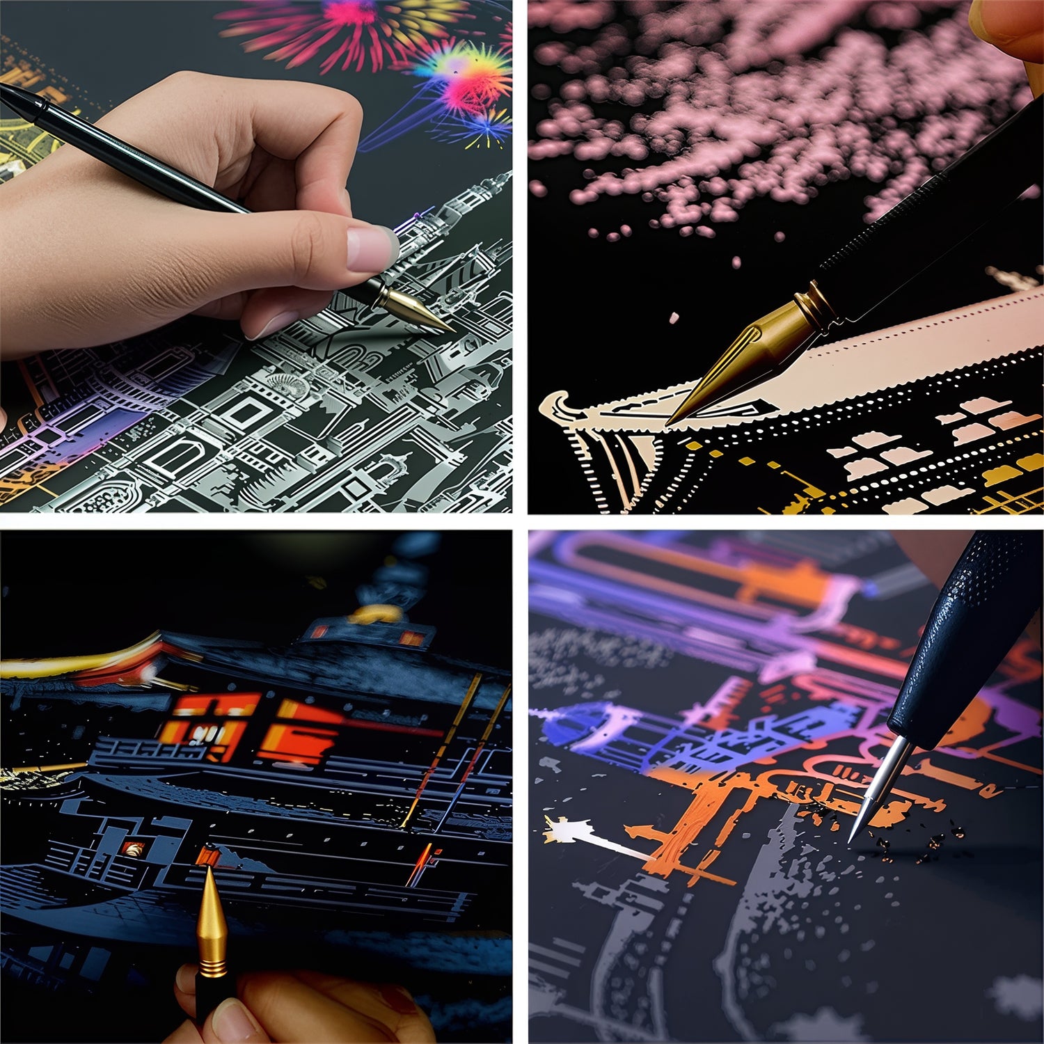 Engage your senses and quiet your mind effortlessly, turning stress into a relaxing creative process with every scratch.